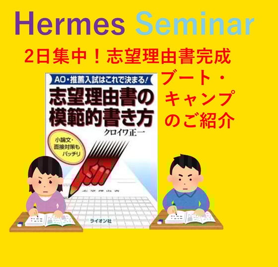 総合型選抜・学校推薦型選抜 対策の専門塾・ヘルメスゼミ®は、出願までの時間が限られたお子さま向けに「2日集中!志望理由書完成ブートキャンプ」(1回5名限定)をご用意いたしました。